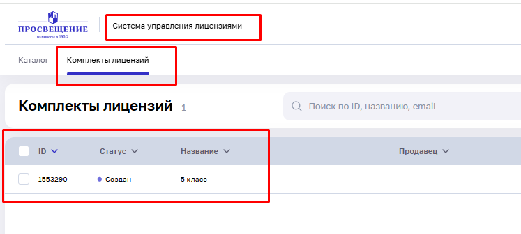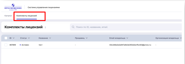 Выбрав «Перейти к списку», вы переходите в систему управления лицензиями в раздел «Комплекты лицензий».